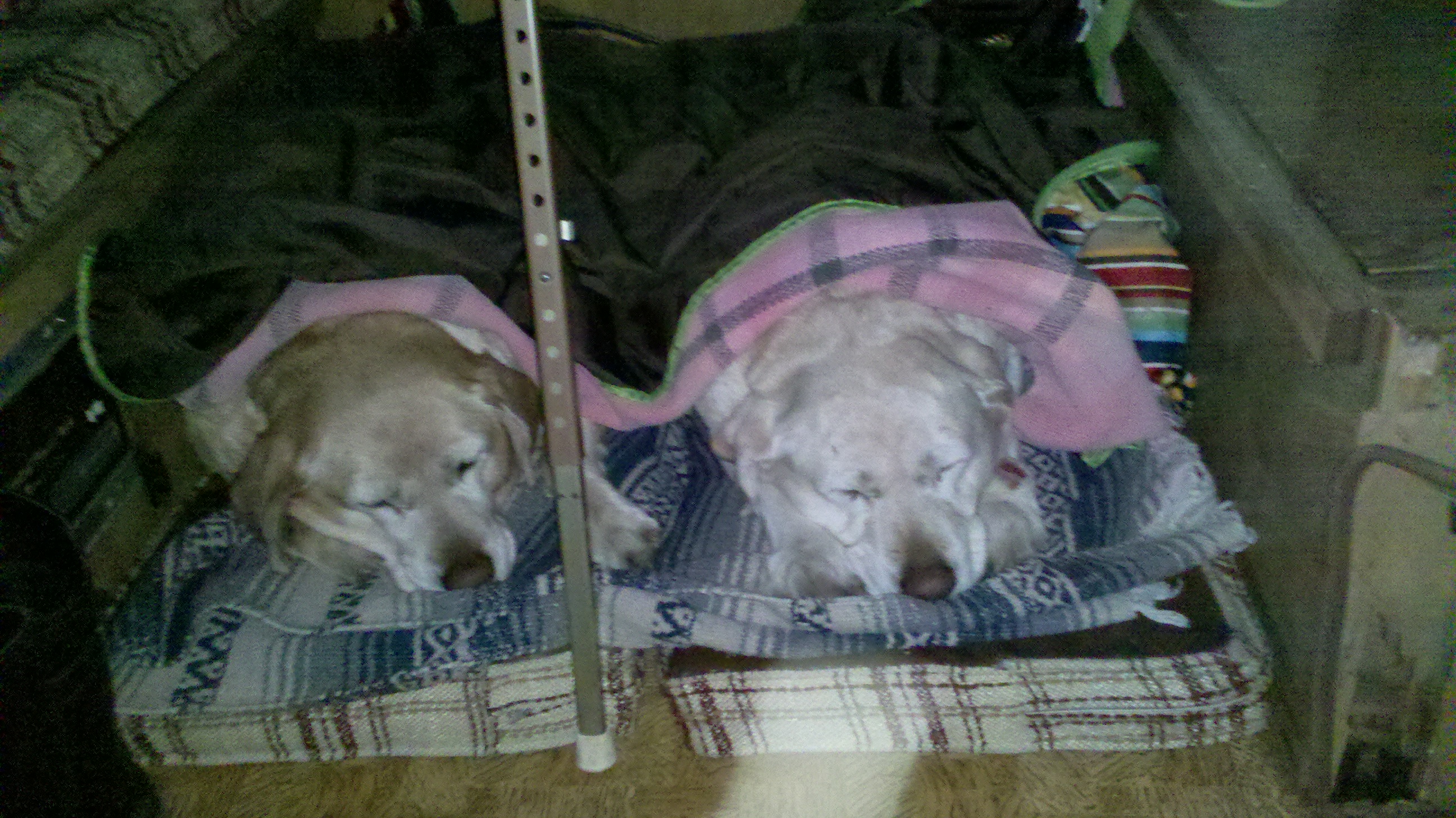 Good thing we had two vehicles. We took my vehicle into town which was an hour away and bought a new tire. Then ended up stopping at home and getting more food, clothes and a couple more blankets for us and the dogs because even the dogs slept the whole night covered up because of the cold. And also because we had only planned on camping for one night and not two.