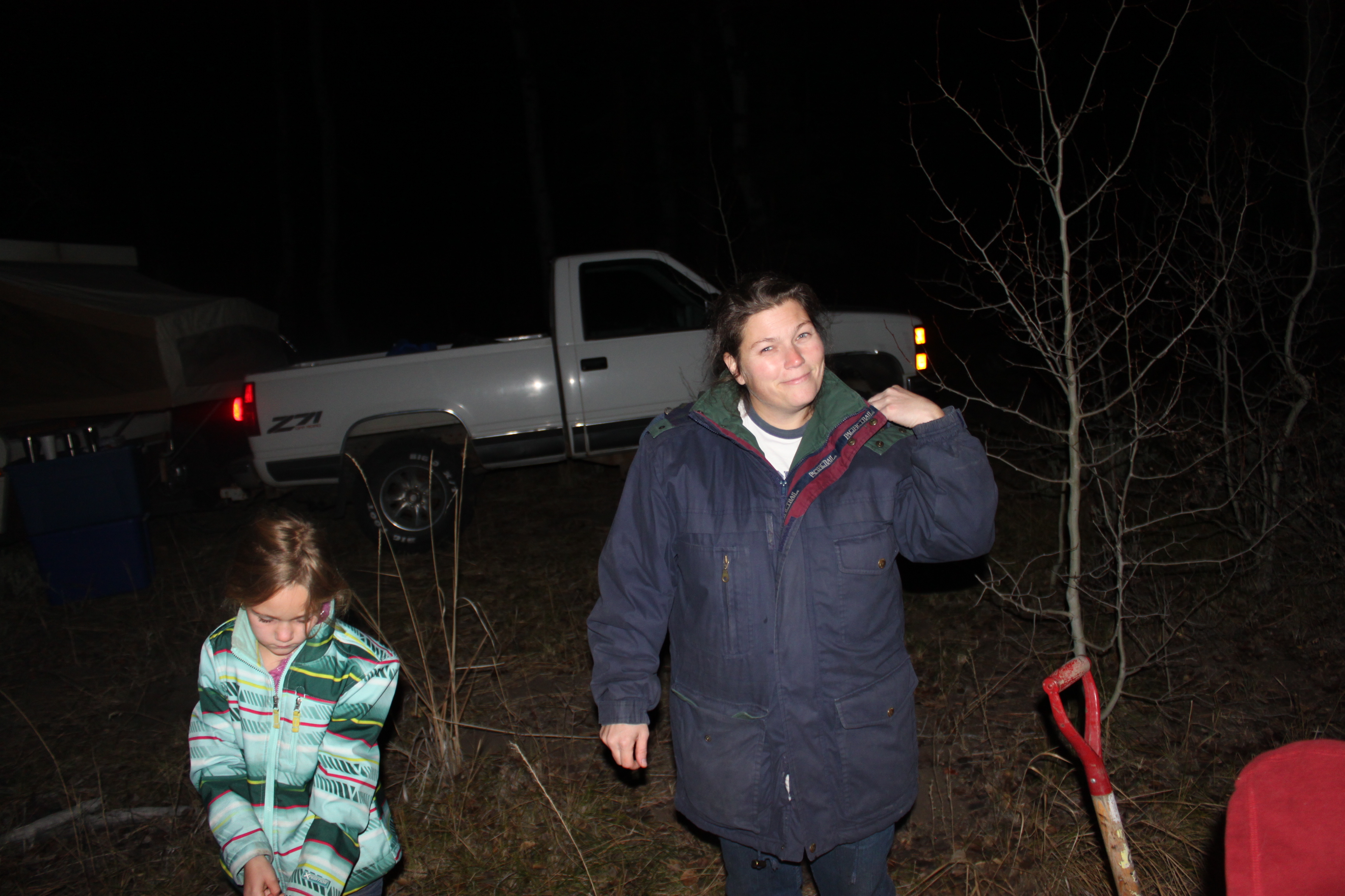 We left Friday after my husband got off work and headed for the wilderness. We travelled these old dusty, windy trails up high in the mountains IN THE DARK. Finally we came upon this one perfect spot and put the tent trailer up all the while in the dark and cold. Did I mention IT WAS FREEZING! We don’t have a working heater or any electricity in our OLD tent trailer via a generator or the such… it is just a glorified tent basically.