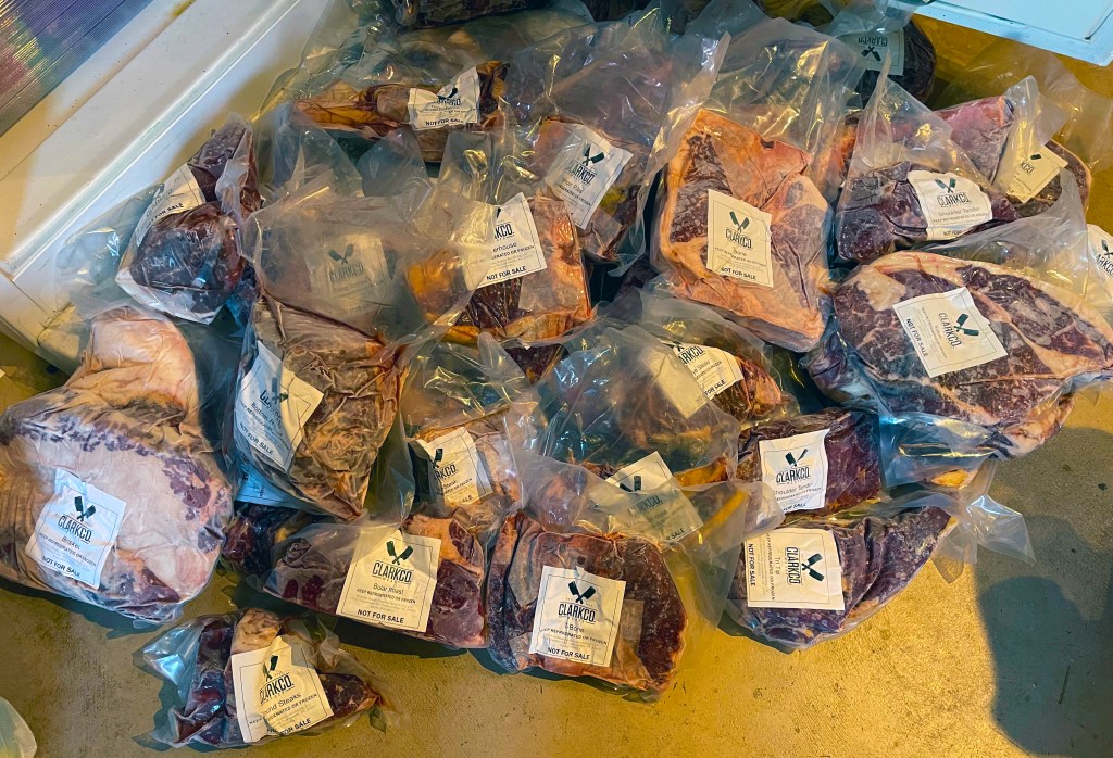 Recently, my cousin and I decided to go in on half a butchered steer from Sunnybrook Farm & Apiary in Elkton, Maryland. Their beef is processed and packaged by ClarkCo Meats in Pennsylvania, and the quality really shows. Everything came vacuum-sealed, clearly labeled, and ready for the freezer. My cousin and I split it evenly, and now I’ve got about 115 pounds of fresh, local beef stuffed in my freezer.